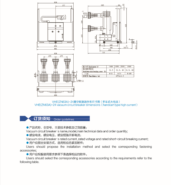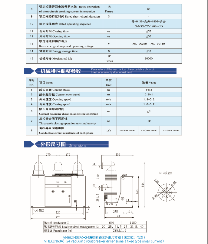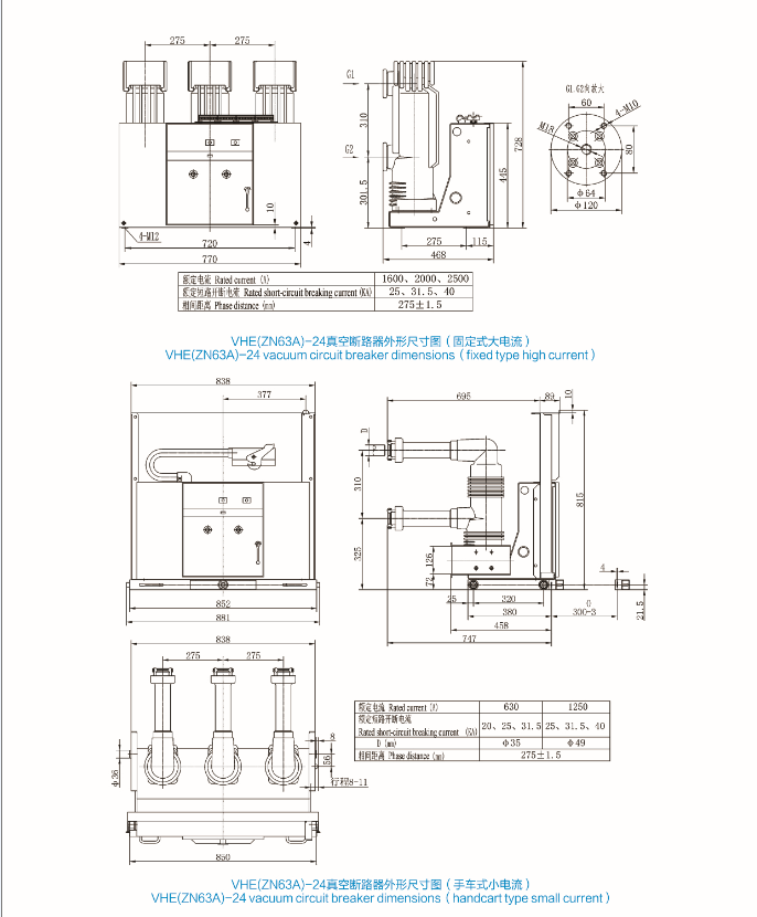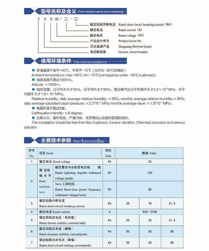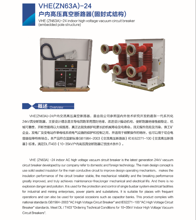VHE(ZN63A)-24户内高压真空断路器(固封式结构)