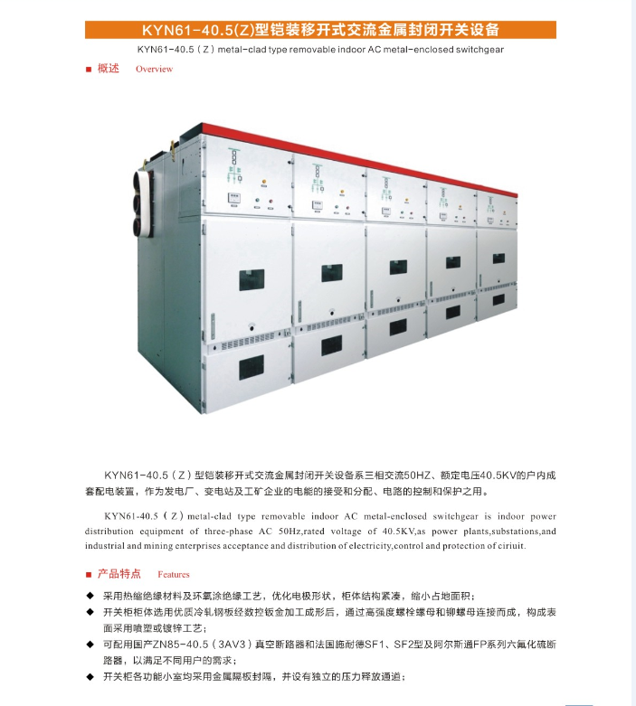 KYN61-40.5(Z)型铠装移开式交流金属封闭开关设备