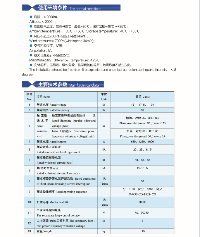 VHE(ZN85)-40.5型户内高压真空断路器(固封式结构)