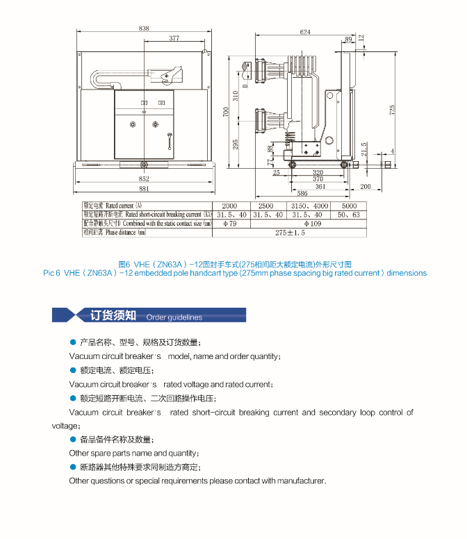 VHE(ZN63A)-12户内高压真空断路器(模块化机构)