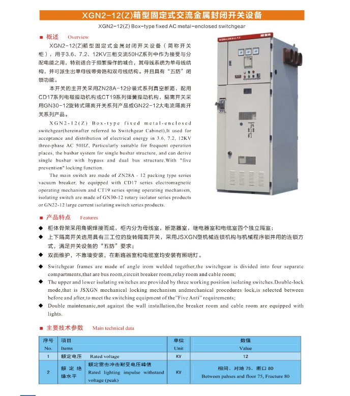XGN2-12(Z)箱型固定式交流金属封闭开关设备
